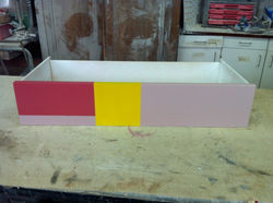 ![]() ©Elodie TERRIEN - Commode - Photo d'un tiroir avec sous couche blanche. | ![]() ©Elodie TERRIEN - Commode - Photo du tiroir en coloration. | ![]() ©Elodie TERRIEN - Commode - Photo du tiroir coloré. |